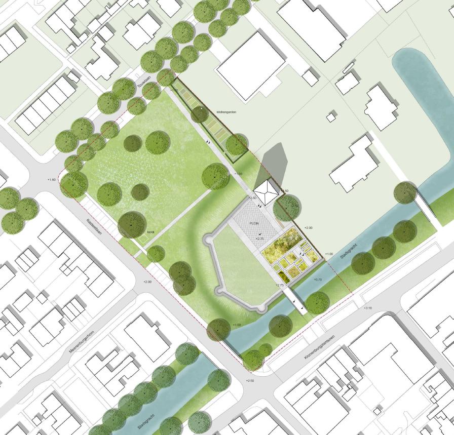 Aan de noord-oostzijde van het plangebied wordt een openbare 'kitchengarden' gerealiseerd. Deze plek is ook in de historie als groentetuin gebruik. De groentetuin kan ook worden gebruikt door de achterliggende school.